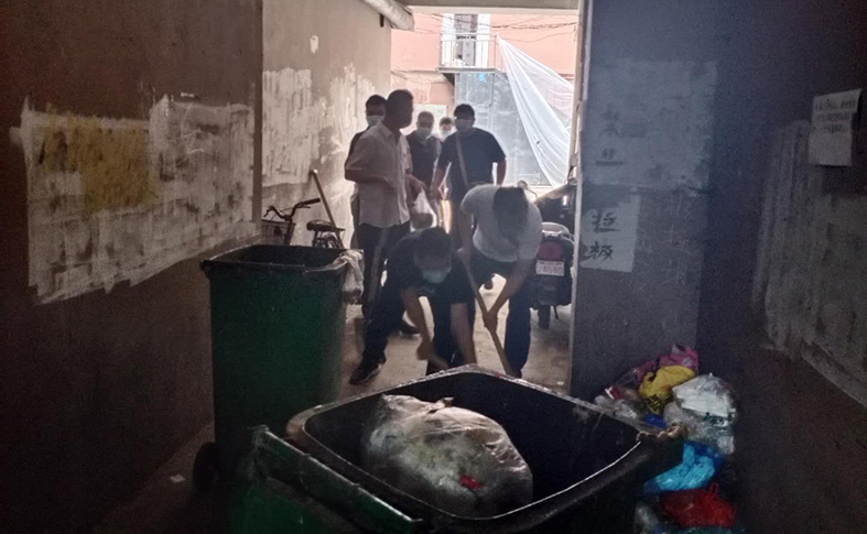 日前,为庆祝中国共产党建党99周年,进一步增强为民服务意识,拉近党群、干群关系。鞍山市公共资源交易中心组织党员到铁西区共和办事处民强社区开展志愿者服务活动,义务清扫社区楼道内大量随意丢弃的生活垃圾。