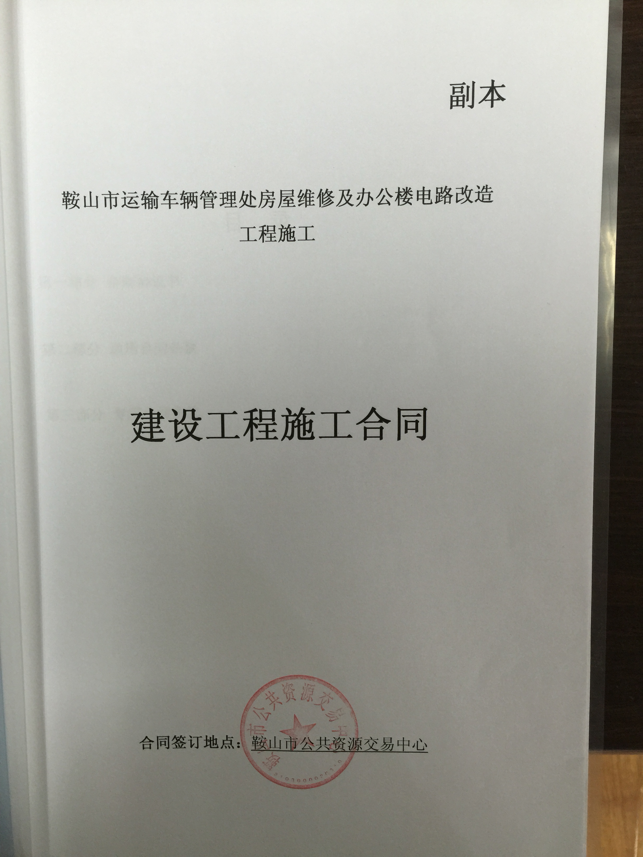 鞍山市运输车辆管理处房屋维修及办公楼电路改造工程合同