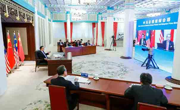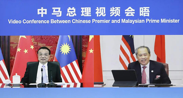 国务院总理李克强5月21日上午在中南海紫光阁同马来西亚总理穆希丁举行视频会晤。