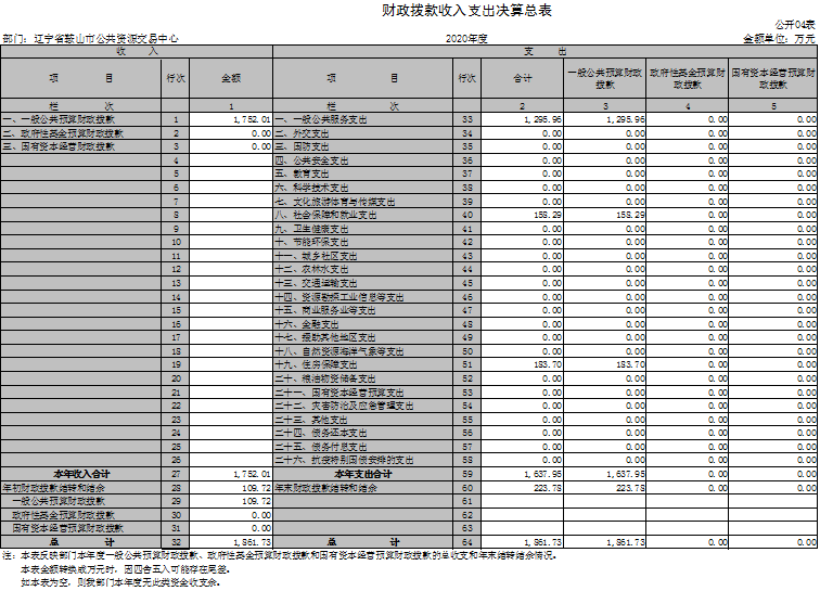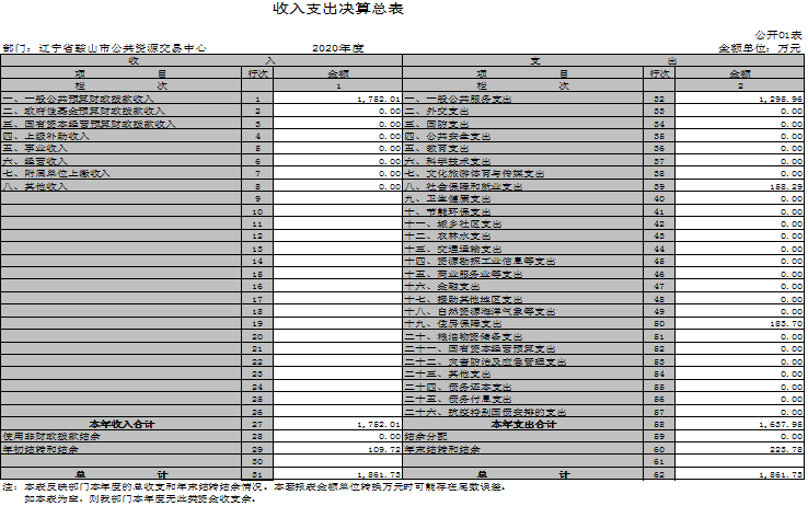 第四部分 鞍山市公共资源交易中心2020年度部门决算报表