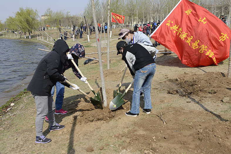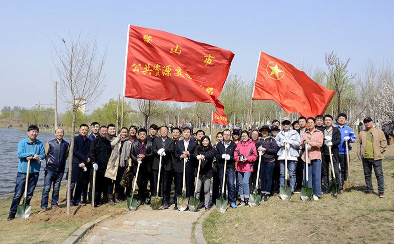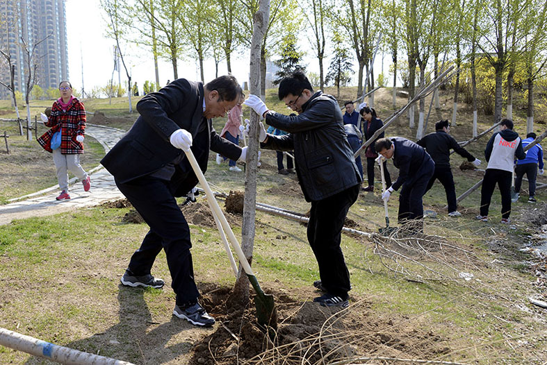 多名干部职工参加了义务植树活动,在兴业环城大道和万水河公园共种植了