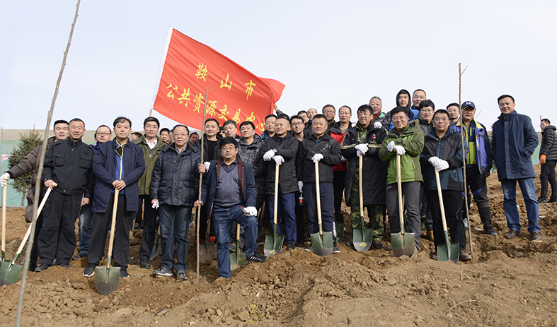 2018年11月17日上午,鞍山市公共资源交易中心的同志到千山区后英集团尾矿坝下矿区,参加市直机关2018矿山生态恢复义务植树活动。