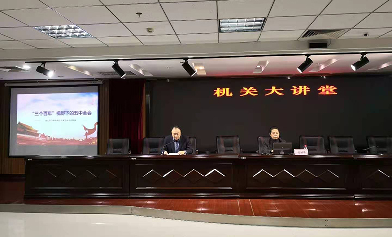按照市直机关工委《做好学习贯彻党的十九届五中全会精神宣讲工作通知》精神,近日,交易中心举办了机关大讲堂活动,邀请辽宁科技大学马克思主义学院院长杨洪泽教授作专题辅导,杨教授以《“三个百年”视野下的五中全会》为题,从党的十九届五中全会概况、五年规划历史坐标和三个百年视野下的五中全会3个部分,对五中全会精神和《中共中央关于制定国民经济和社会发展第十四个五年规划和二〇三五年远景目标的建议》进行了全面系统深刻的解读。