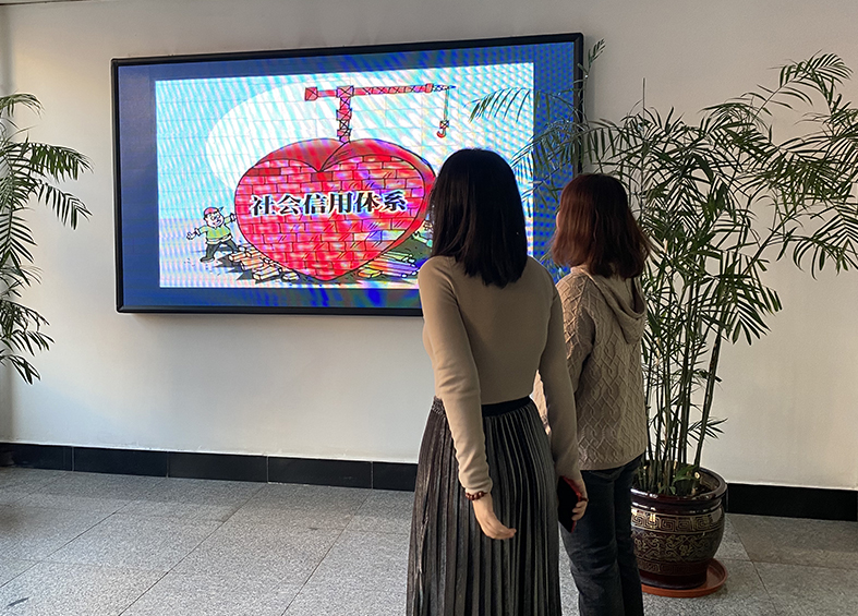 近日,市公共资源交易中心开展“建设社会信用体系 打造信用交易平台”诚信建设主题宣传活动,利用中心公共空间的LED大屏幕宣传诚信的重要性。告诫全体干部职工“一处失信、处处受限”,积极引导全中心干部职工树立良好信用意识。