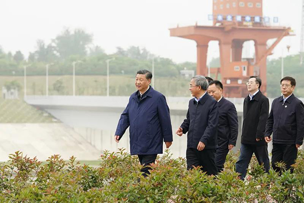 习近平首先来到陶岔渠首枢纽工程,实地察看引水闸运行情况,随后乘船考察丹江口水库,听取有关情况汇报,并察看现场取水水样。习近平强调,南水北调工程是重大战略性基础设施,功在当代,利在千秋。要从守护生命线的政治高度,切实维护南水北调工程安全、供水安全、水质安全。吃水不忘挖井人,要继续加大对库区的支持帮扶。要建立水资源刚性约束制度,严格用水总量控制,统筹生产、生活、生态用水,大力推进农业、工业、城镇等领域节水。要把水源区的生态环境保护工作作为重中之重,划出硬杠杠,坚定不移做好各项工作,守好这一库碧水。