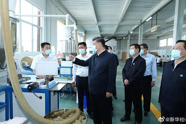 5月14日上午,中共中央总书记、国家主席、中央军委主席习近平在河南省南阳市主持召开推进南水北调后续工程高质量发展座谈会并发表重要讲话。这是座谈会前,习近平于12日在南阳药益宝艾草制品有限公司考察。新华社记者 鞠鹏 摄