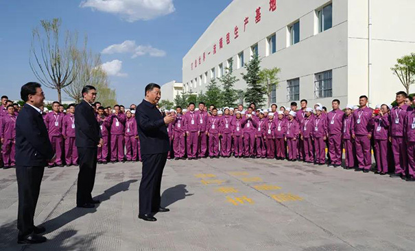 6月7日至9日,中共中央总书记、国家主席、中央军委主席习近平在青海考察。这是7日下午,习近平在青海圣源地毯集团有限公司考察时,向企业职工挥手致意。新华社记者 李学仁 摄