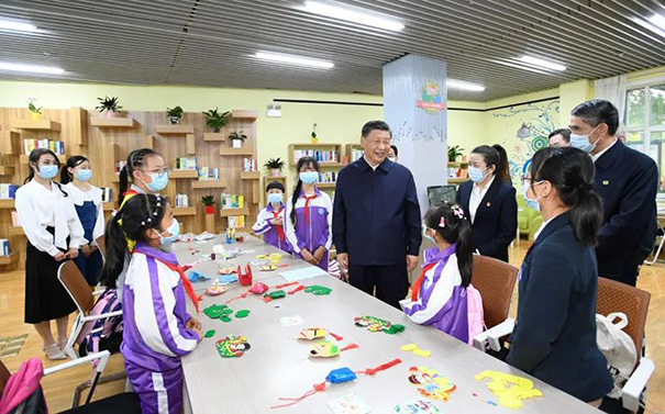 6月7日至9日,中共中央总书记、国家主席、中央军委主席习近平在青海考察。这是7日下午,习近平在西宁市城西区文汇路街道文亭巷社区阅览室,了解社区向青少年提供公益性课后托管服务情况。新华社记者 李学仁 摄