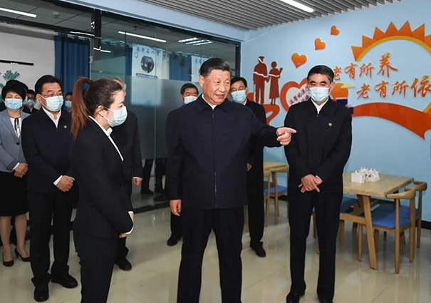 6月7日至9日,中共中央总书记、国家主席、中央军委主席习近平在青海考察。这是7日下午,习近平在西宁市城西区文汇路街道文亭巷社区幸福食堂,了解社区向老年人提供餐饮服务情况。新华社记者 燕雁 摄