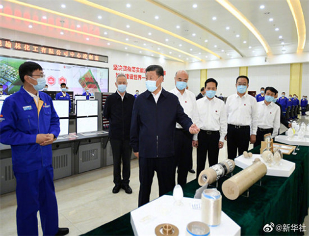 13日上午,习近平总书记来到国家能源集团榆林化工有限公司考察,走进中心控制室、来到项目现场,了解煤炭综合利用等情况。他强调,能源产业要继续发展,否则不足以支撑国家现代化。煤炭能源发展要转化升级,走绿色低碳发展的道路。这样既不会超出资源、能源、环境的极限,又有利于实现碳达峰、碳中和目标,适应建设人类命运共同体的要求,把我们的地球家园呵护好。(文字记者:张晓松、朱基钗 摄影记者:李学仁、谢环驰、燕雁)